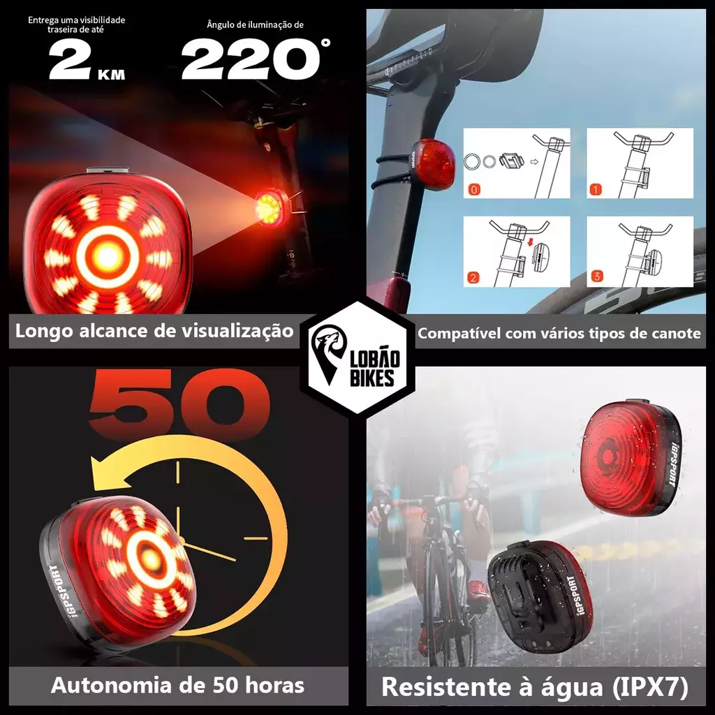 Para alternar entre os modos de iluminação basta clicar no botão ou ajustar por meio do ciclocomputador iGPSPORT ou do APP. Modos de iluminação: Constante Alta, Constante Baixa, Piscando Baixo, Piscando Alto, Personalizado e Standby.